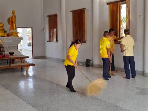 ในการนี้ นายนพรัตน์ สายสมบัติ พัฒนาการอำเภอเขาวง พร้อมเจ้าหน้าที่พัฒนาชุมชนอำเภอเขาวง ร่วมปรับปรุงภูมิทัศน์ ทำความสะอาด ล้างพื้นบริเวณ ภายในวัด ผู้เข้าร่วมกิจกรรม จำนวน 30 คน
