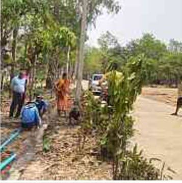 ในการนี้ นายนพรัตน์ สายสมบัติ พัฒนาการอำเภอเขาวง พร้อมเจ้าหน้าที่พัฒนาชุมชนอำเภอเขาวง ร่วมปรับปรุงภูมิทัศน์ ทำความสะอาด บริเวณภายในวัด ผู้เข้าร่วมกิจกรรม จำนวน 40 คน