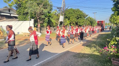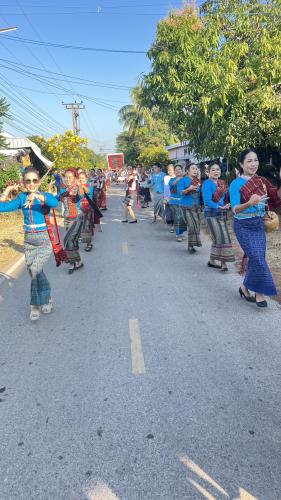 2.ขบวนอัญเชิญเงินพระราชทานขวัญถุงกองทุนแม่ของแผ่นดินเข้าสู่หมู่บ้าน