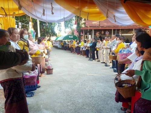 นายโกศล ธรรมวิเศษ นายอำเภอเขาวง พร้อมด้วย นายนพรัตน์ สายสมบัติ พัฒนาการอำเภอเขาวง หัวหน้าส่วนราชการ รัฐวิสาหกิจ ผู้นำกลุ่มองค์กร เครือข่าย และประชาชน ร่วมพิธีเจริญพระพุทธมนต์และทำบุญตักบาตรพระสงฆ์ ถวายพระราชกุศลเฉลิมพระเกียรติพระบาทสมเด็จพระเจ้าอยู่หัว เนื่องในโอกาสพระราชพิธีสมมงคลพระชนมายุเท่าพระบาทสมเด็จพระพุทธยอดฟ้าจุฬาโลกมหาราช สมเด็จพระปฐมบรมกษัตริยาธิราชแห่งพระราชวงศ์จักรี พุทธศักราช 2568 ณ วัดหนองผือพัฒนาราม บ้านหนองกว้าง หมู่ที่ ๗ ตำบลหนองผือ อำเภอเขาวง จังหวัดกาฬสินธุ์