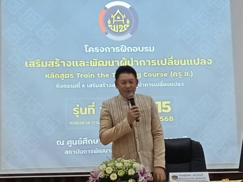 นายสุรพล แก้วอินธิ ผู้ตรวจราชการกรมการพัฒนาชุมชน ปฏิบัติหน้าที่ผู้อำนวยการศูนย์ศึกษาและพัฒนาชุมชนอุดรธานี พร้อมด้วยคณะผู้อำนวยการกลุ่มงานฯ เจ้าหน้าที่ศูนย์ฯ ดำเนินโครงการเสริมสร้างและพัฒนาผู้นำการเปลี่ยนแปลง กิจกรรมที่ 6 เสริมสร้างสมรรถนะผู้นำการเปลี่ยนแปลง หลักสูตร Train the Training Course (ครู ข.) รุ่นที่ 3 ระหว่างวันที่ 13 - 15 กุมภาพันธ์ 2568 โดยกรมการพัฒนาชุมชน มอบหมายให้ศูนย์ศึกษาและพัฒนาชุมชนอุดรธานี เป็นหน่วยจัดการฝึกอบรม มีวัตถุประสงค์เพื่อเสริมสร้างและพัฒนาผู้นำการเปลี่ยนแปลงในการเสริมสร้างตำบลเข้มแข็ง ตามหลักปรัชญาของเศรษฐกิจพอเพียง และเพื่อแสดงผลสำเร็จการส่งเสริมการใช้ประโยชน์และขยายผลแผนพัฒนาตำบลสู่ตำบลเข้มแข็งตามหลักปรัชญาของเศรษฐกิจพอเพียงอย่างยั่งยืน
