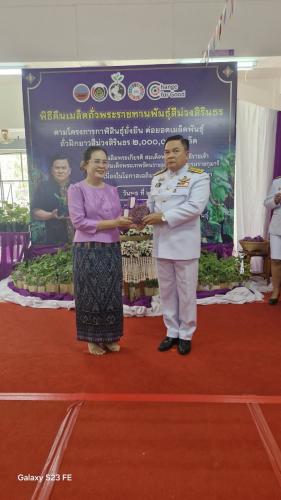 3.พิธีมอบเมล็ดพันธุ์ถั่วฝักยาวสีม่วงสิรินธร ตามโครงการกาฬสินธุ์ยั่งยืน สานต่อเมล็ดพันธุ์ถั่วฝักยาวสีม่วงสิรินธร เพื่อเฉลิมพระเกียรติ สมเด็จพระกนิษฐาธิราชเจ้า กรมสมเด็จพระเทพรัตนราชสุดาฯ เนื่องในโอกาสเฉลิมพระชนมายุ 70 พรรษา (2 เมษายน 2568) เพื่อแจกจ่ายเมล็ดพันธุ์ถั่วฝักยาวสีม่วงสิรินธรจำนวน 2,000,000 เมล็ด ให้แก่เกษตรกร ภาคีเครือข่ายภาคการเกษตรในจังหวัดกาฬสินธุ์ โดยมีประธานคณะกรรมการสตรีระดับอำเภอ จำนวน 18 ราย เข้ารับมอบเมล็ดพันธุ์ถั่วฝักยาวสีม่วงสิรินธร