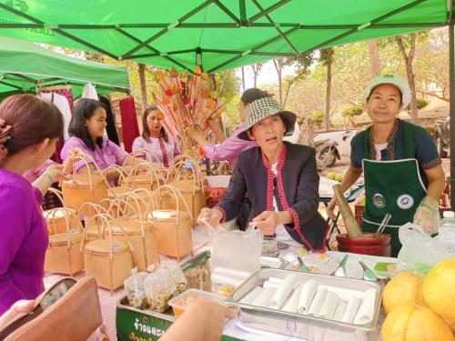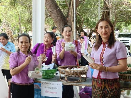 ในการนี้นายพงศ์วิทย์ บุ่งนาแซง พัฒนาการอำเภอเขาวง พร้อมด้วยเจ้าหน้าที่พัฒนาชุมชน เครือข่าย OTOP และกลุ่มอาชีพสตรี เข้าร่วมรับมอบลายผ้าพระราชทาน พร้อมจัดร้านจำหน่ายสินค้า OTOP,ข้าวแดะงา และนำข้าวแดะงาสมทบอาหารโรงทาน ในกิจกรรมวันนี้ด้วย